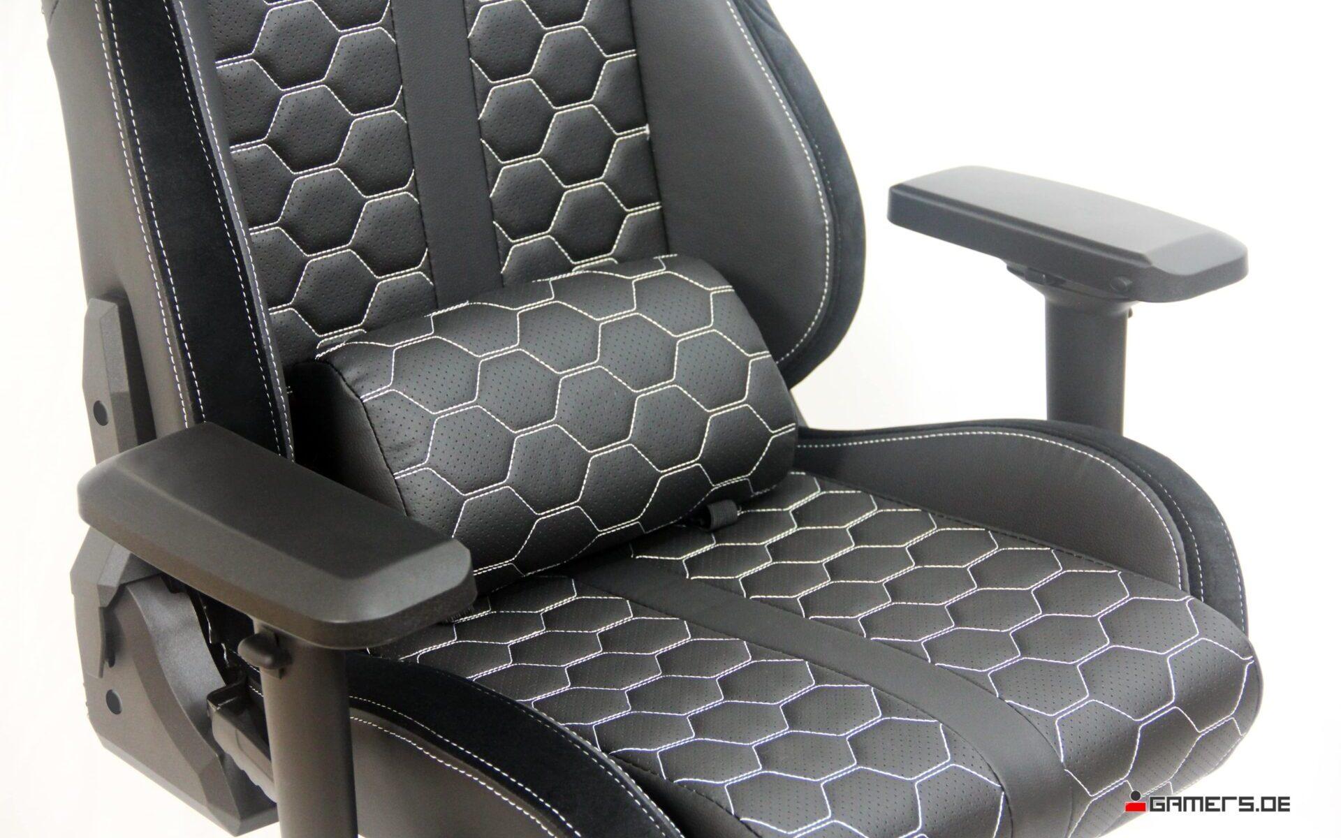 Designtechnisch macht der LC-GC-801BW eine ausgezeichnete Figur. Mit seinem modernen Look, der schwarzen Polsterung und den auffälligen weißen Ziernähten sowie dem Hexagon-Muster zieht er alle Blicke auf sich. Das Design ist nicht nur stylish, sondern auch funktional: Der Stuhl ist robust gebaut und fühlt sich von der ersten Nutzung solide an. Die Verwendung von hochwertigem PU-Leder sorgt für ein elegantes Finish und eine angenehme Haptik. Insgesamt passt der Stuhl gut in die generelle Gamer-Designsprache, wird daher auch zu fast jeden Setup passen. Andererseits sticht das schlichte Design natürlich weniger heraus als manch anderer Stuhl in „aufregenderen“ Farbrichtungen.