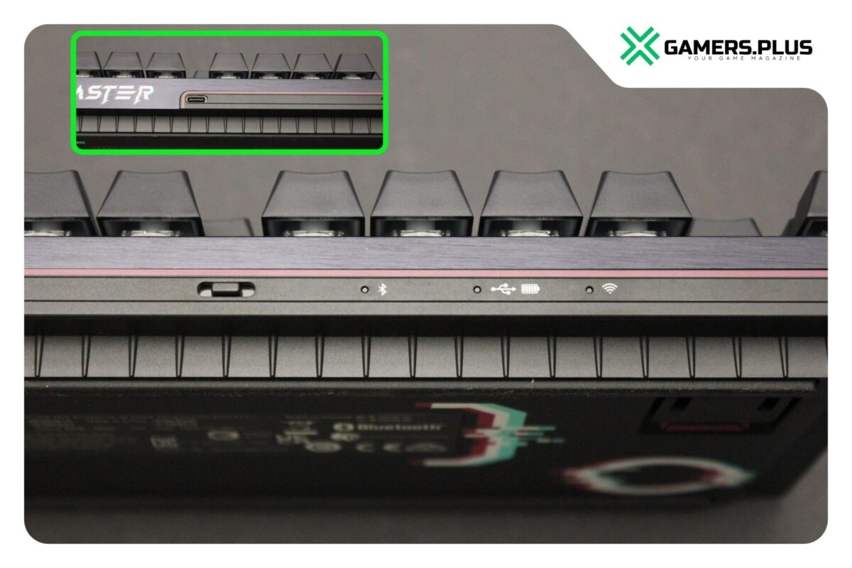 Im Lieferumfang befinden sich neben der Tastatur selbst ein USB-A-auf-USB-C-Kabel, der 2,4-GHz-Dongle sowie die notwendige Dokumentation. Die Inbetriebnahme gelingt unkompliziert. Über einen Schiebeschalter auf der Rückseite lässt sich zwischen kabelgebundenem Betrieb, 2,4-GHz-Funk und Bluetooth 5.3 wechseln. Die Verbindung ist stabil, die Umschaltung erfolgt ohne Verzögerung, soweit so gut!